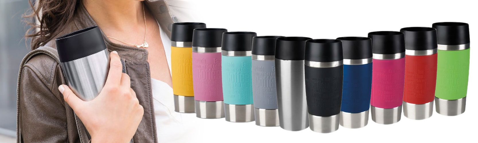 Emsa Travel Mug & Emsa Thermoflaschen graviert mit Ihrem Logo - praktische Werbeartikel für unterwegs.